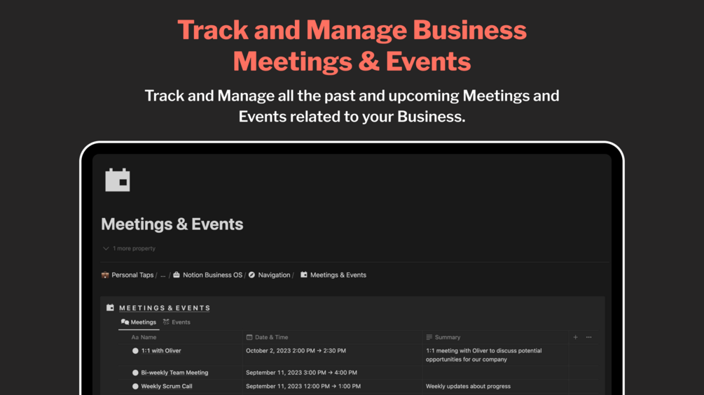 - Track and Manage your Business Meetings and Events.
