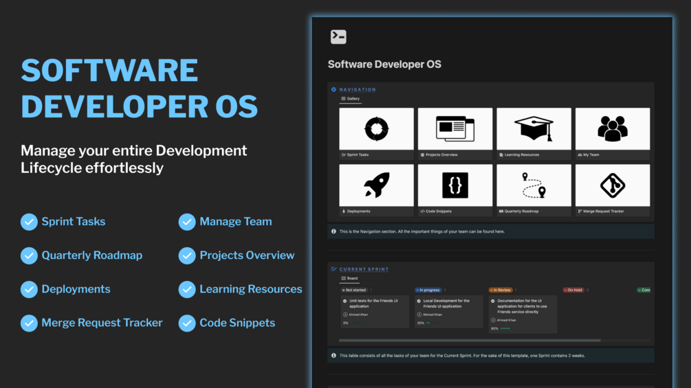 The Notion Software Developer OS template is for Businesses, Startups, Freelancers or Software Development Agencies to manage and track everything related to their Software Development Processes using Notion.