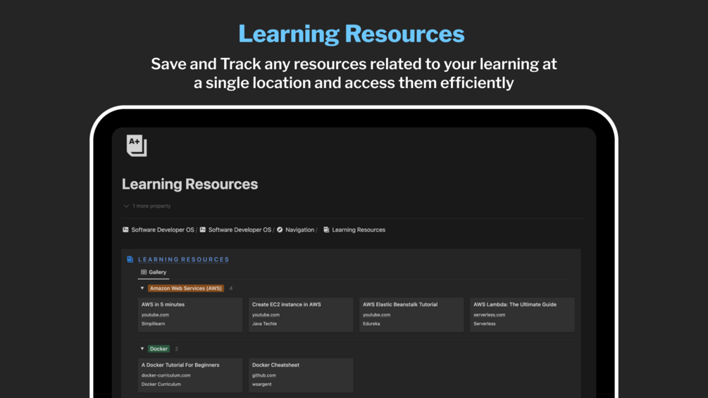 • Add or remove any Learning Resources based on any new technology you're learning or save informative blogs/articles and access them without a hassle.