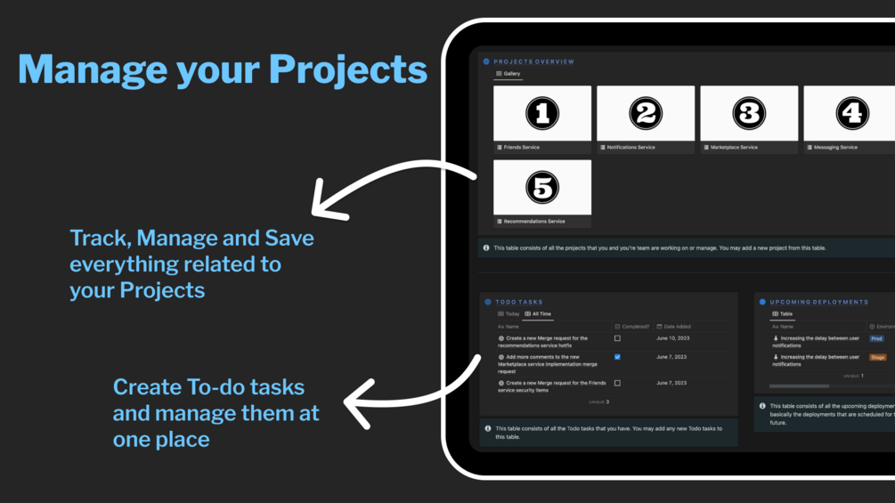This template helps you manage your entire Team's Software Development processes effortlessly. With the help of this template, you can: