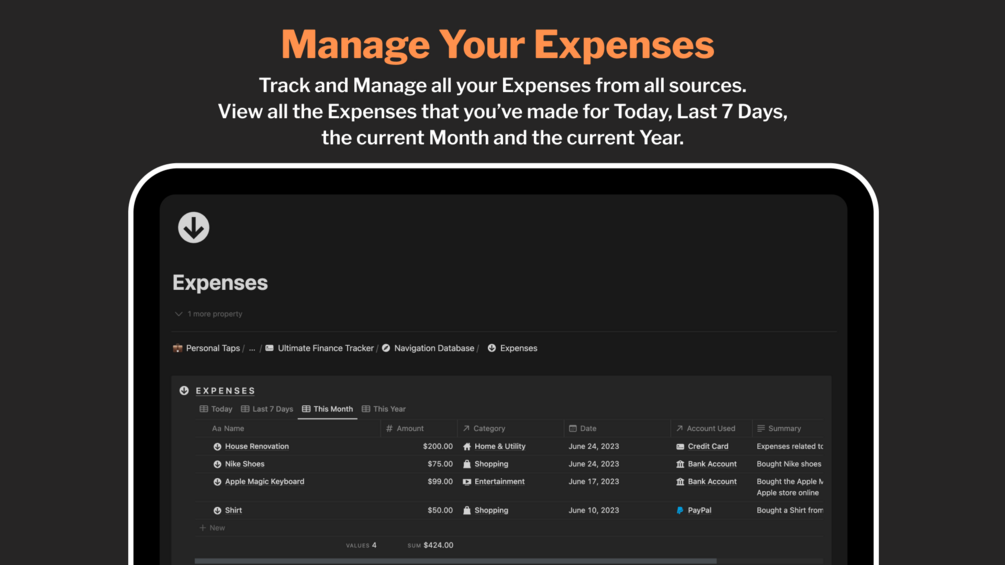 This template helps you manage all your Finances effortlessly. With the help of this template, you can: